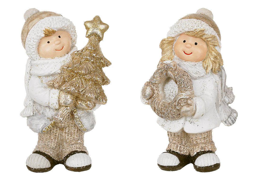 Декоративна фігура Дітки 15см, колір - бежевий із золотим гліттером, 2 види - Хлопчик і Дівчинка