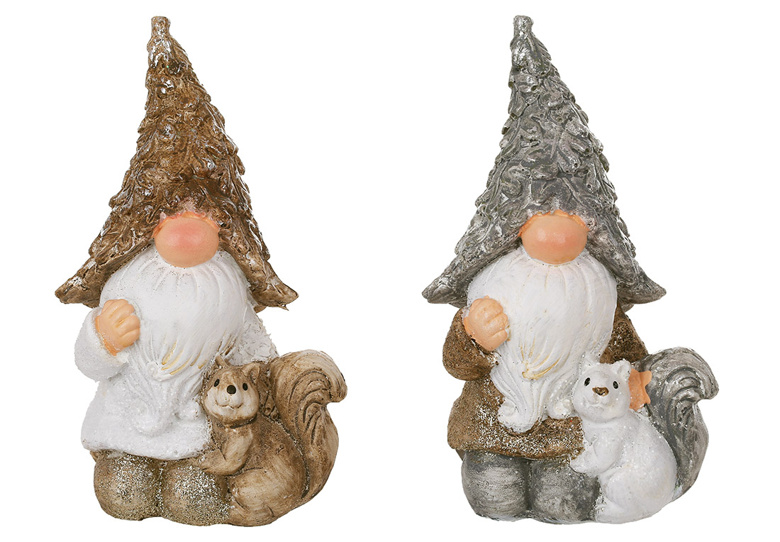 Декоративна фігура Гном з білкочкою 15см, 2 дизайни, колір - коричневий з сірим, декор: поталь срібло, цукрова присипка