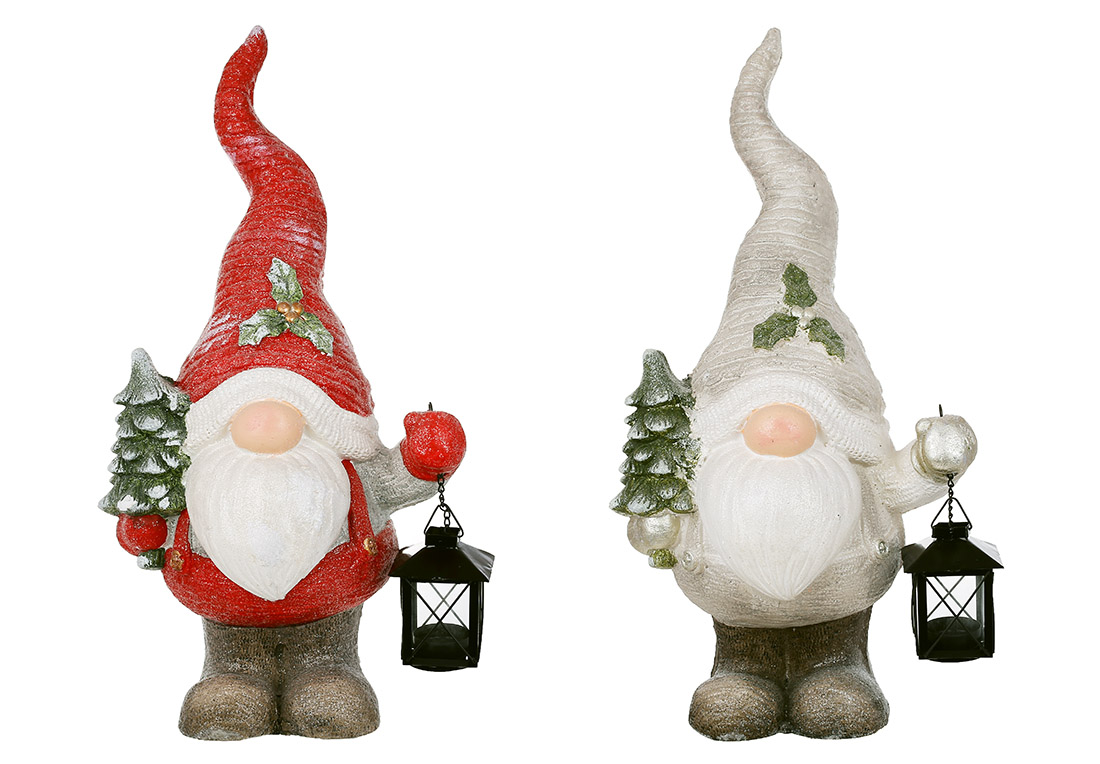 Декоративна фігура Гном з ліхтариком (свічка 40мм) у глітері, 51.5см, 2 дизайни