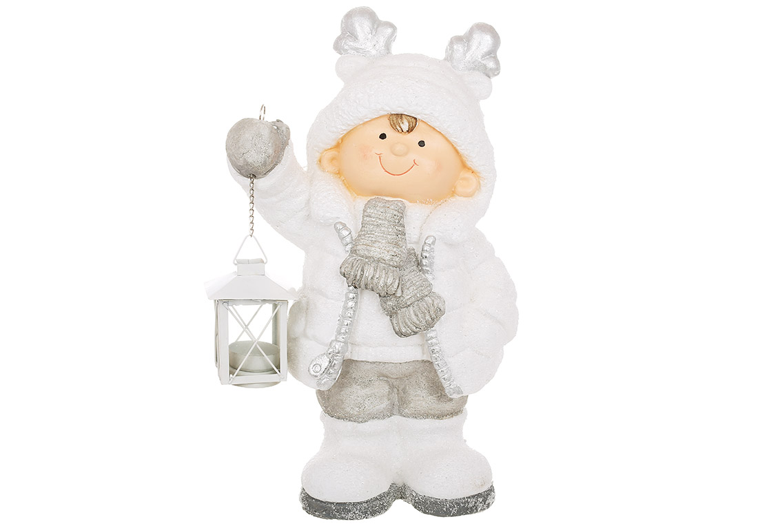 Декоративна фігура з ліхтариком Хлопчик у шапці Олень, 42см, 2 дизайну