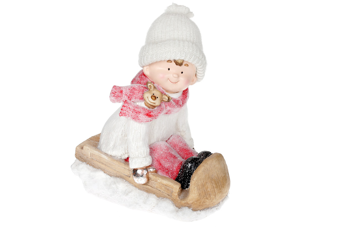Декоративна фігура на санчатах Хлопчик, 41см, колір - червоний з білим