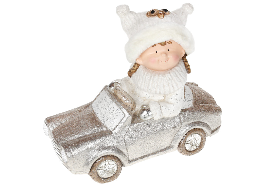 Декоративна фігура на сріблястій машині Дівчинка у шапці Сова з LED підсвічуванням, 40см
