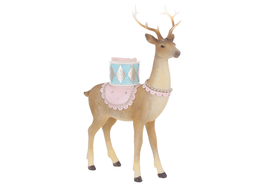 Декоративна фігура Олень з барабаном 15*6*21.5см, колір - коричневий з рожевим та блакитним