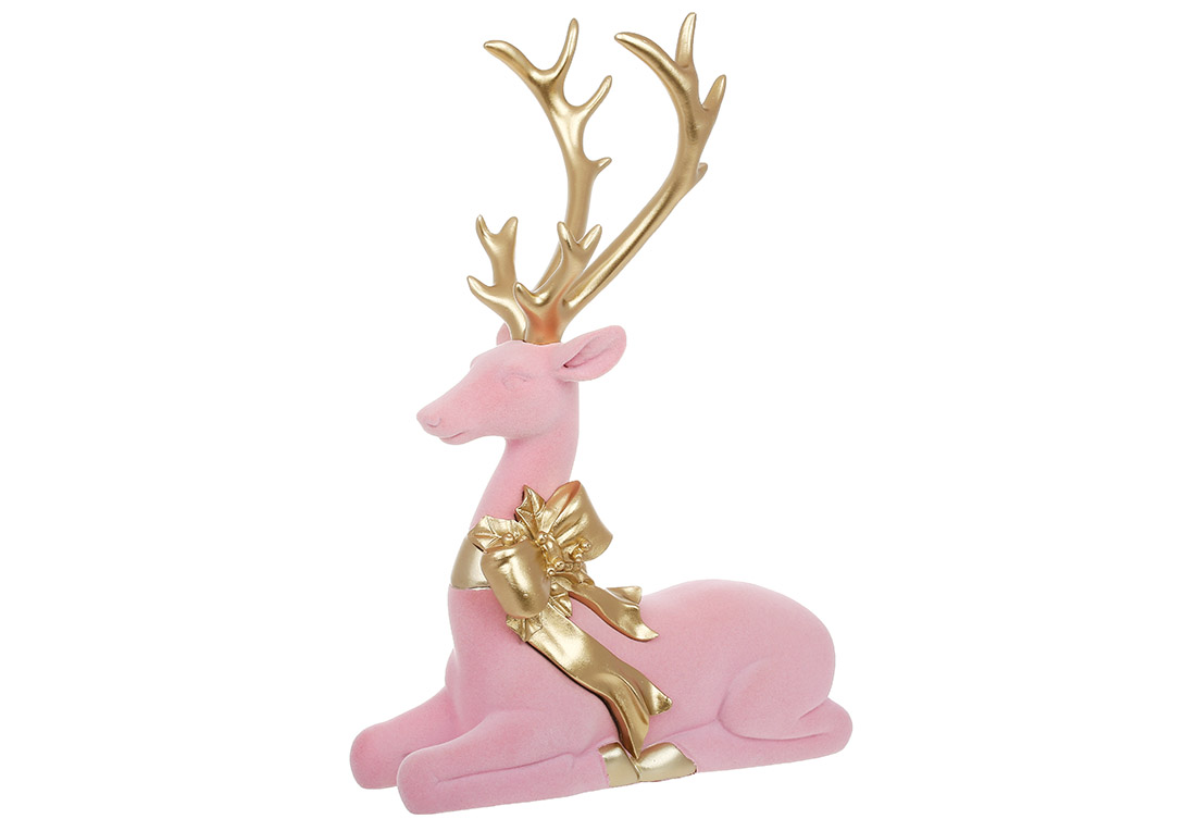 Декоративна фігура Олень з оксамитовим напиленням, 27*11*38.5см, колір - рожевий із золотом