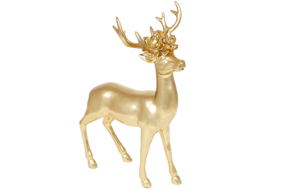 Декоративна фігура Олень з квітами 42см, колір - золото