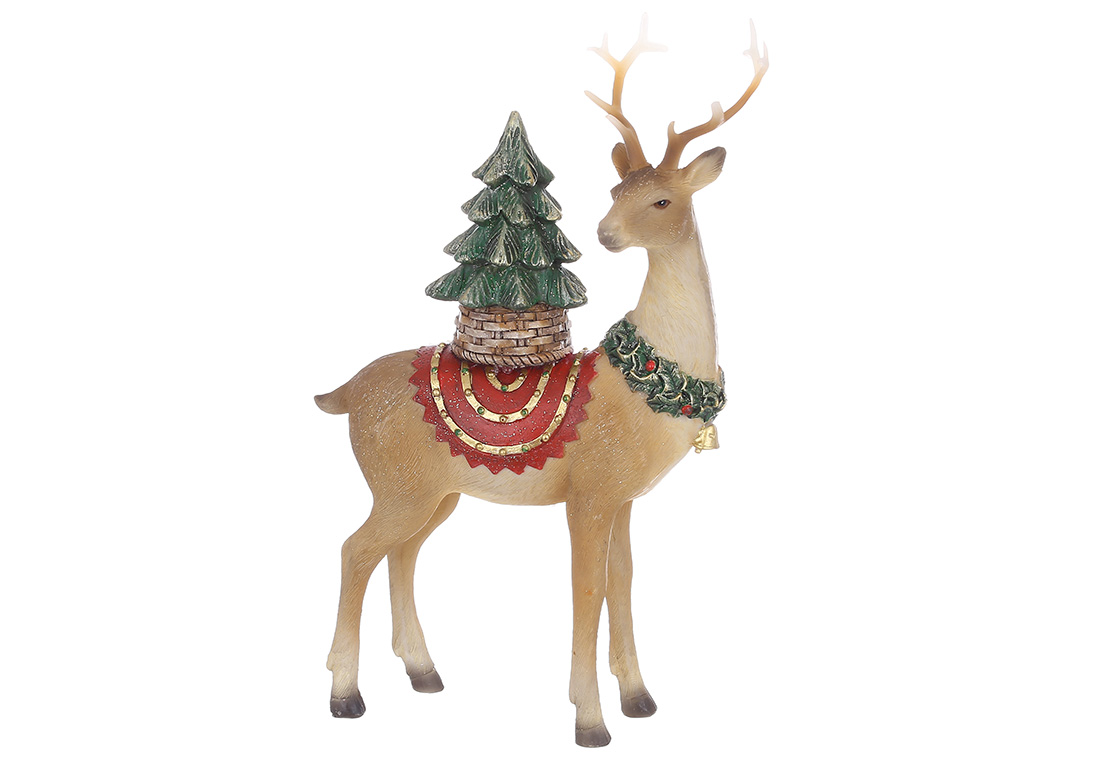 Декоративна фігура Олень з ялинкою 14*5.5*22см, колір - коричневий із зеленим та червоним