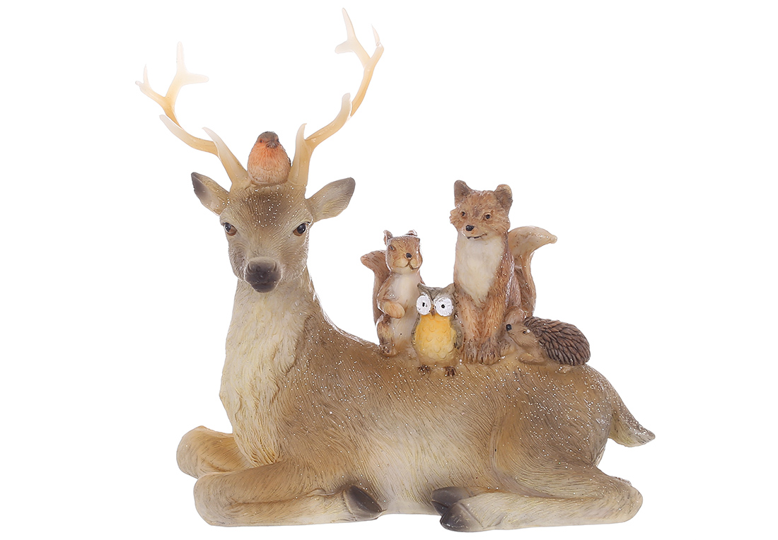 Декоративна фігура Олень з лісовими тваринами 15*6*13.5см, колір -коричневий