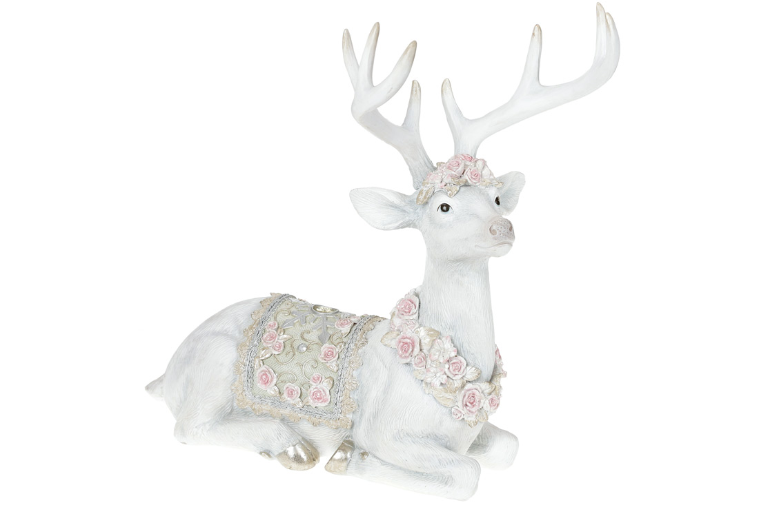 Декоративна фігура Олень у трояндах зі стразами 38см, колір - білий з рожевим