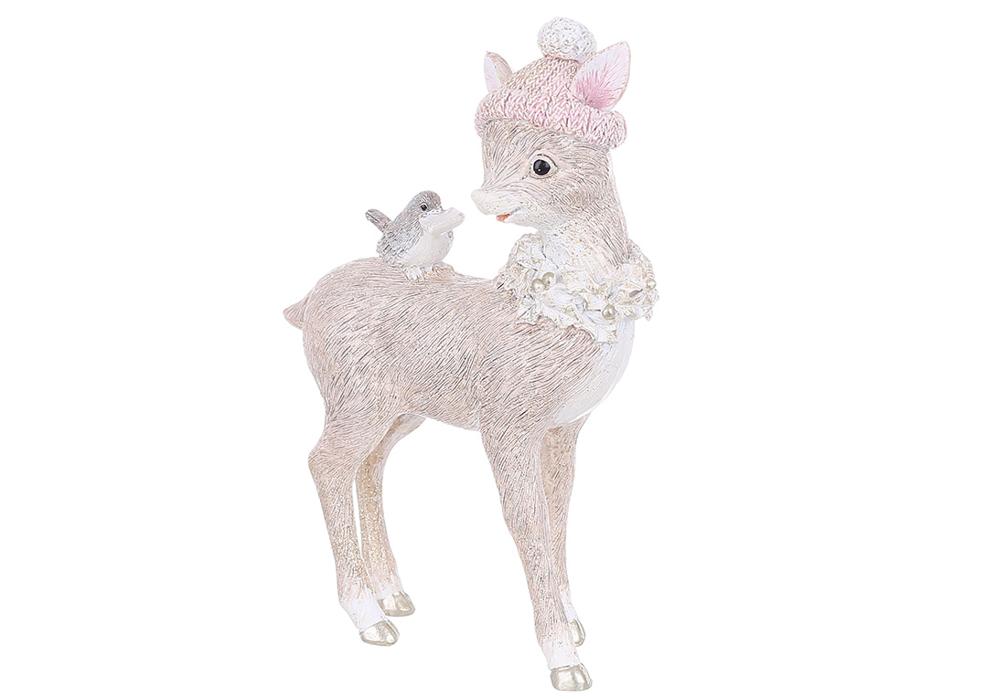 Декоративна фігура Оленя 10.5*4.5*15.5см, колір - бежевий з рожевим