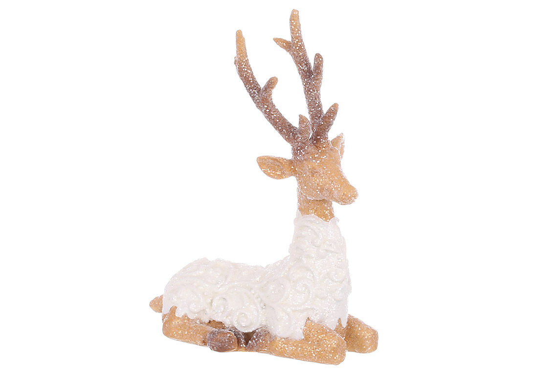 Декоративна фігура Пряниковий олень з гліттером 9.5*5*11.5см, колір - світло-коричневий з білим
