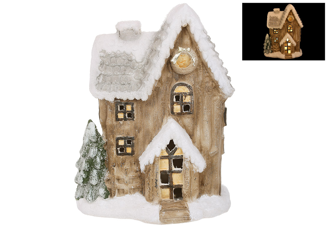 Декоративна фігура з LED підсвічуванням Будинок з білим снігом, 34.5*19.5*45см, колір - коричневий зі сріблом