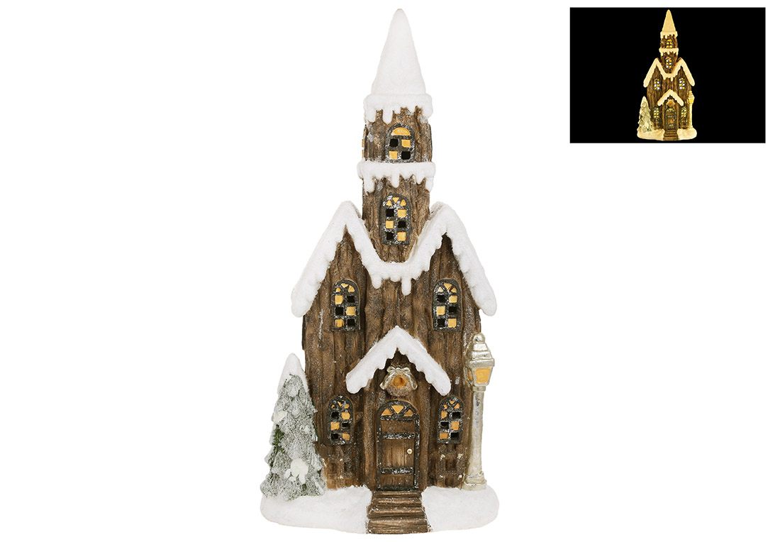 Декоративна фігура з LED підсвіткою Дім з білим снігом, 48.5*24.5*91см, колір - коричневий