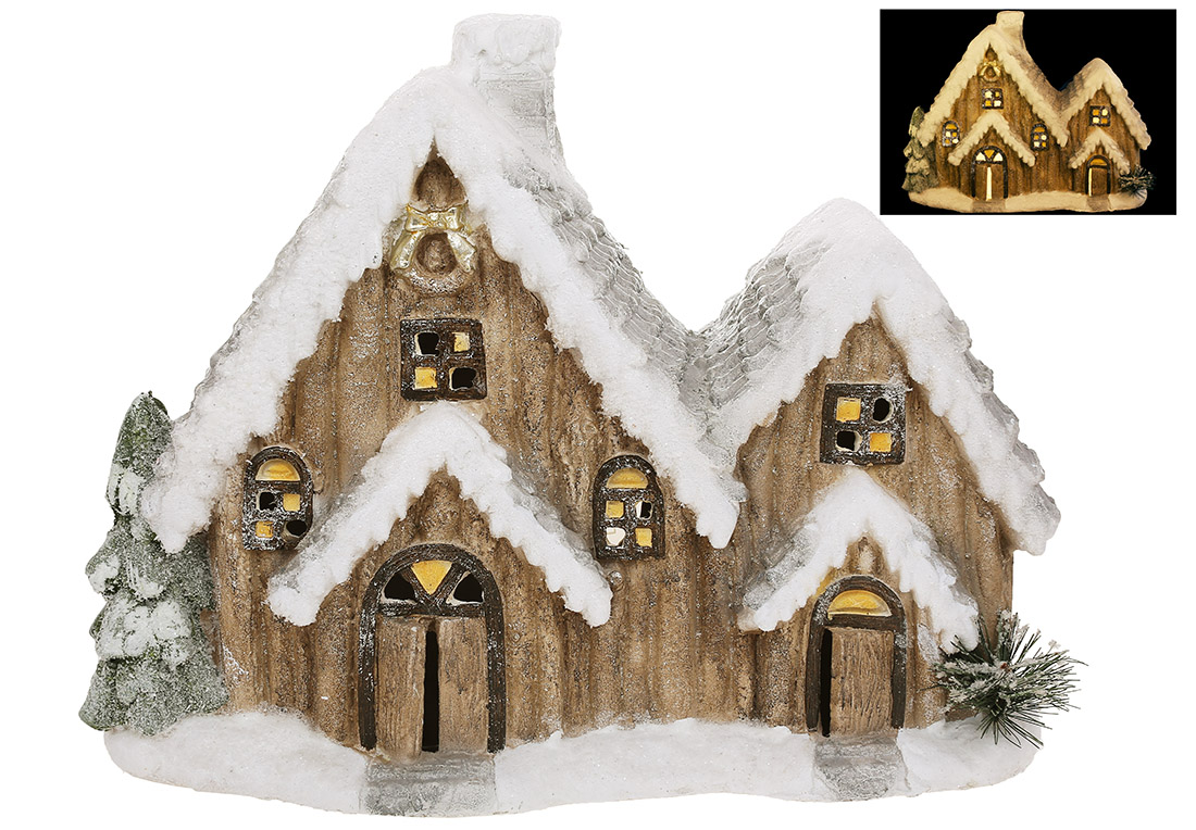 Декоративна фігура з LED підсвічуванням Будинок з білим снігом, 49*19.8*37.5см, колір - коричневий зі сріблом