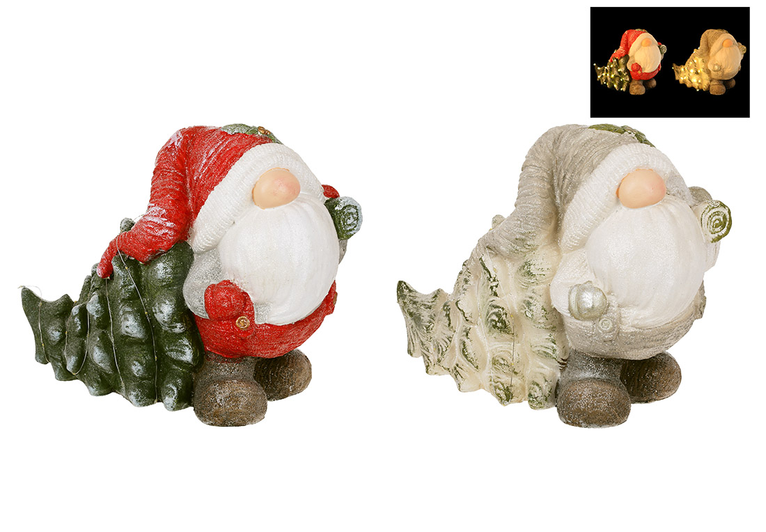 Декоративна фігура з LED підсвіткою Гном з ялинкою в гліттері 29.5см, 2 дизайни