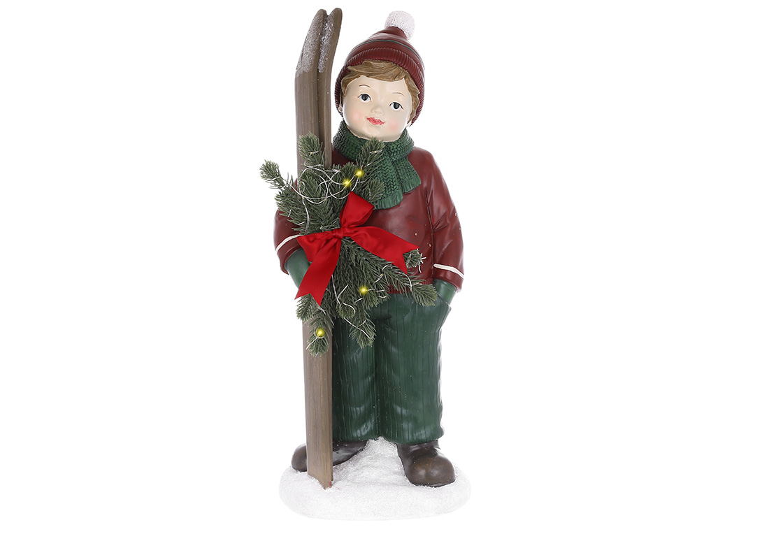 Декоративна фігура з LED підсвічуванням Хлопчик з лижами, 47см