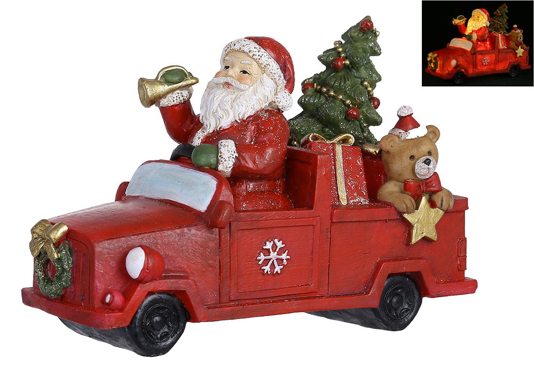 Декоративна фігура з LED підсвічуванням Санта на машині 15.5*7.5*11см, колір - червоний
