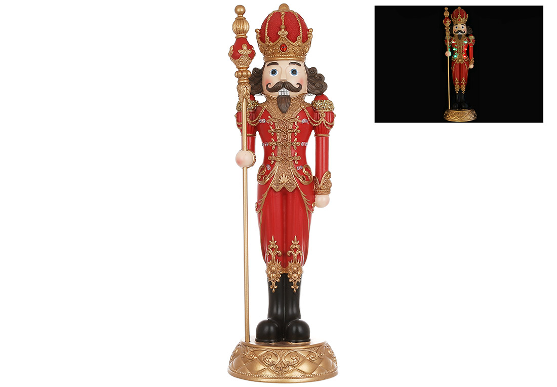 Декоративна фігура з LED підсвічуванням Лускунчик, на батарейках (2*AAА), 15*15*50.5см, колір - червоний із золотом