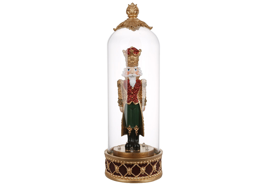 Декоративна фігура з LED підсвічуванням Лускунчик у скляному ковпаку, на батарейках (3*AAA), 33.5см