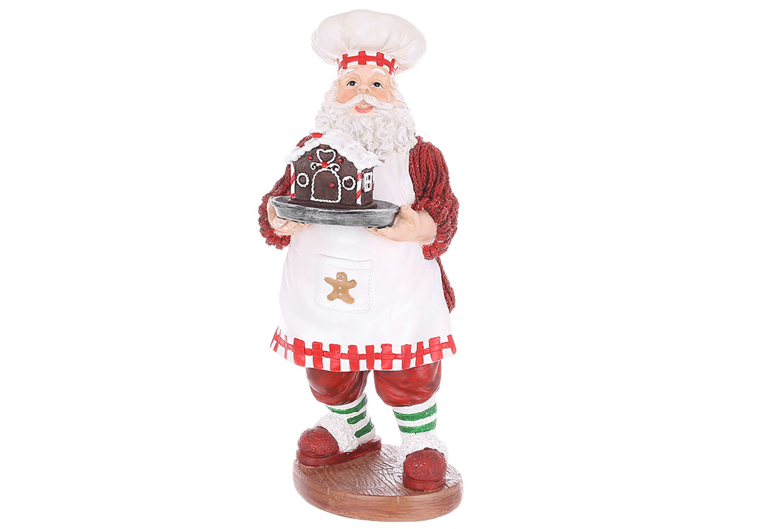 Декоративна фігура Санта-Клаус із пряниковим будиночком 13*14*31см, колір - червоний з білим