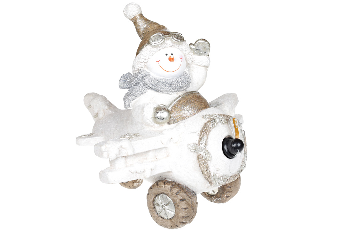 Декоративна фігура Сніговик в літаку з LED-підсвічуванням на батарейках (2xAAA), 37.5см, колір - білий