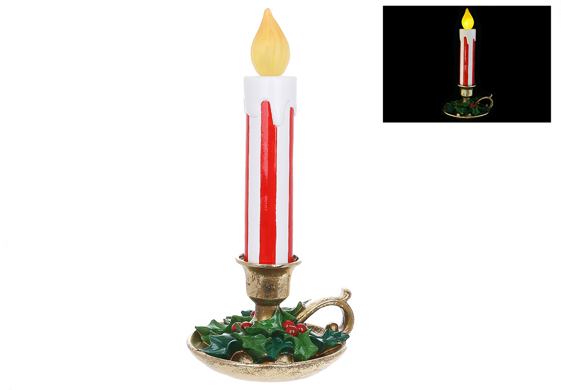 Декоративна фігура Свічка в золотому свічнику з LED підсвічуванням на батарейках (3*AA), 37.5см