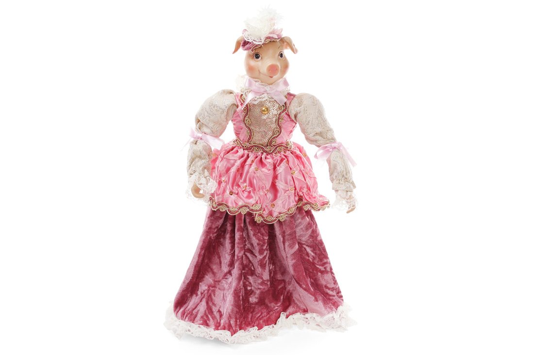 Декоративна фігура Свинка в сукні 40см, колір - рожевий