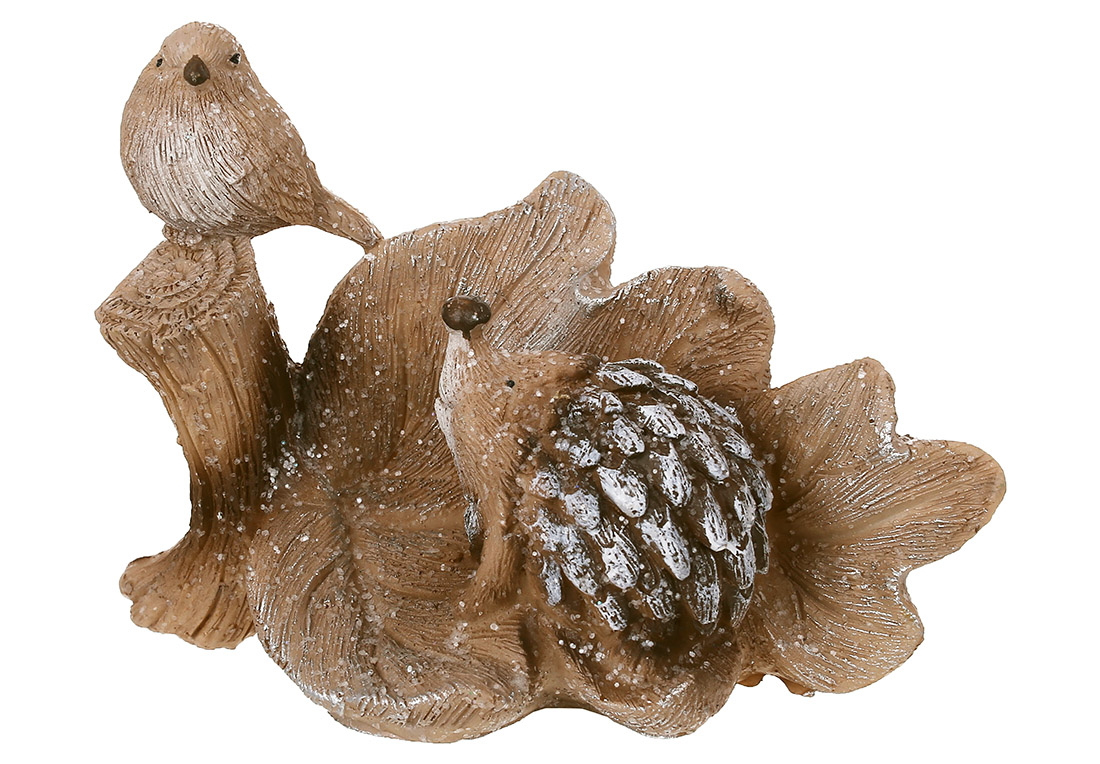 Декоративна фігура в глітері Лист із пташкою та їжачком 10см, колір - коричневий, декор: цукрова присипка, поталь срібло
