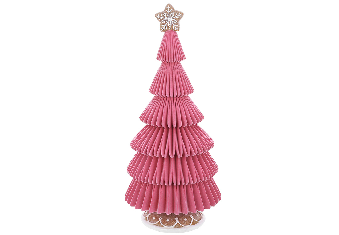 Декоративна фігура Зефірно-пряникова ялинка з флоковим напиленням, 21.5*21.5*48см, колір - рожевий