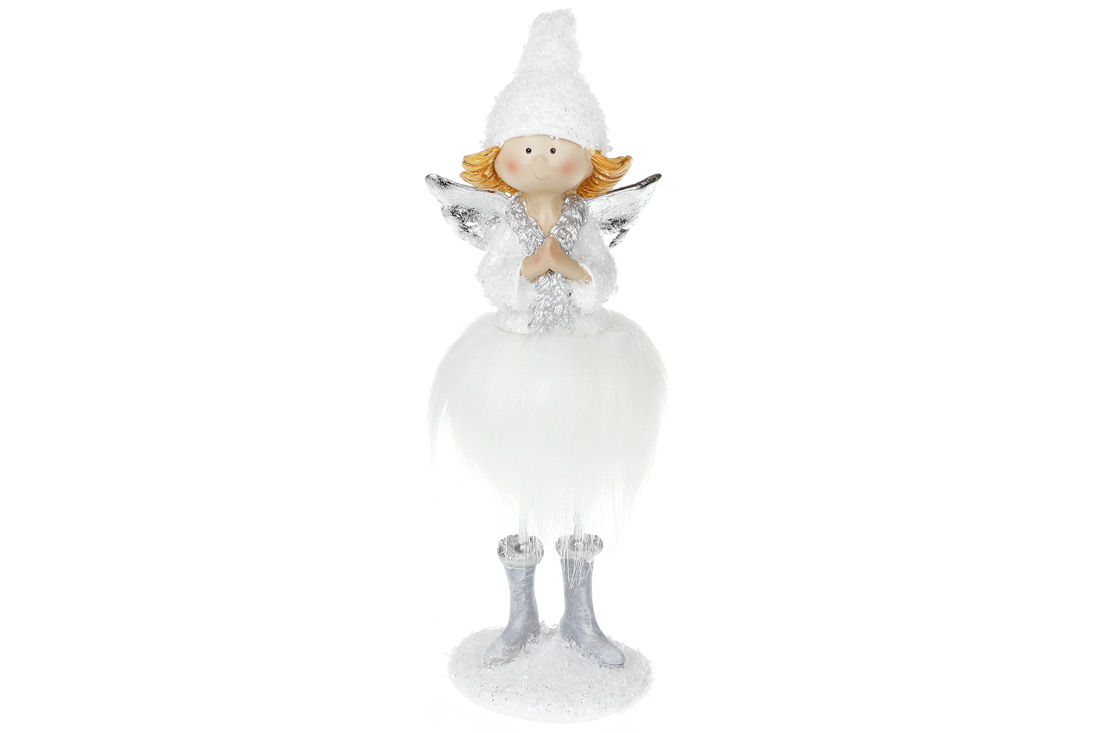 Декоративна фігурка Янгол з хутряною спідницею, 20см, колір - білий зі сріблом
