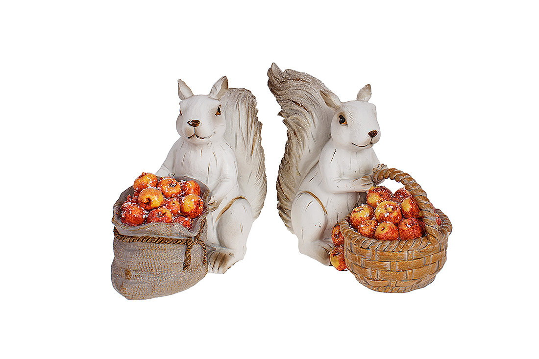 Декоративна фігурка Білка з яблучками 16см, 2 дизайни, колір - сірий