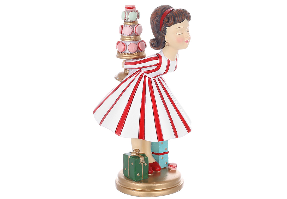 Декоративна фігурка Дівчина з макарунсами 8.5*7.4*14.5см, колір - червоний із білим