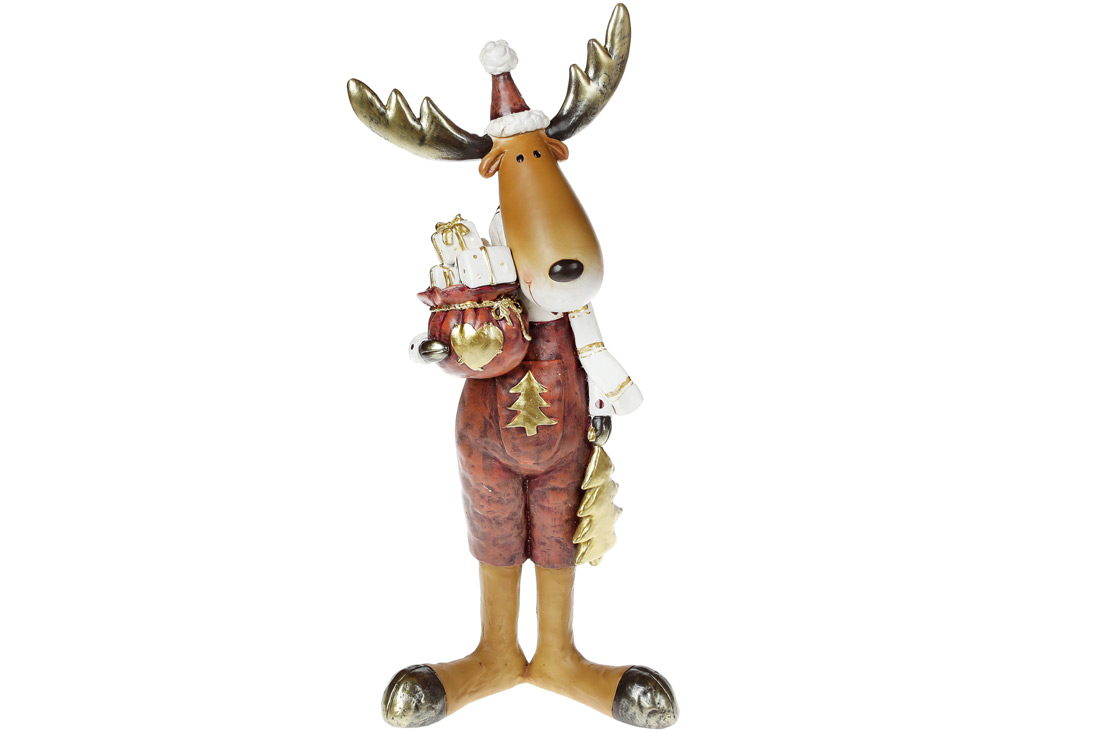 Декоративна фігурка Лось з подарунками, 40.5см, колір - бордо із золотом