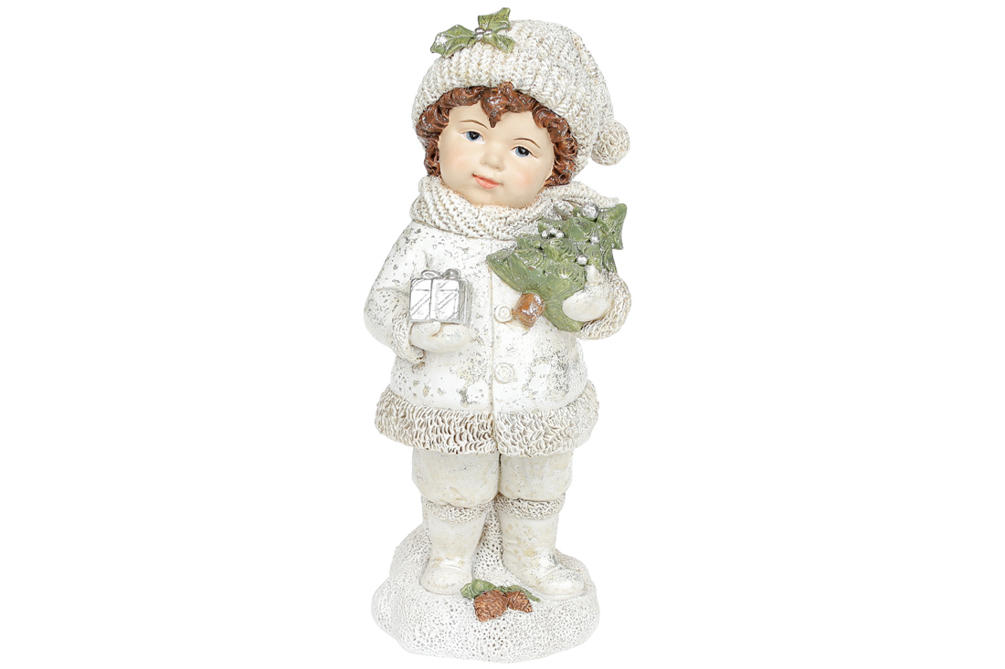 Декоративна фігурка Хлопчик з ялинкою, 20см, колір - білий зі сріблом