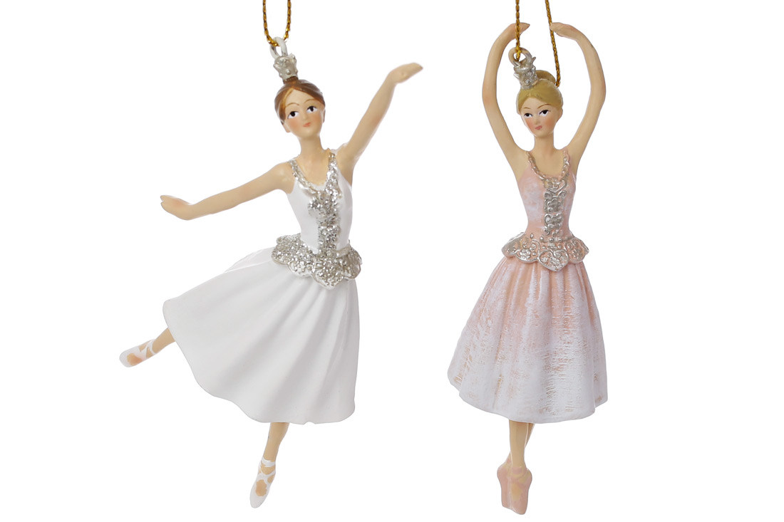 Декоративна фігурка на підвісі Балерина, 12см, колір - білий, крем з шампанню, 2 дизайни