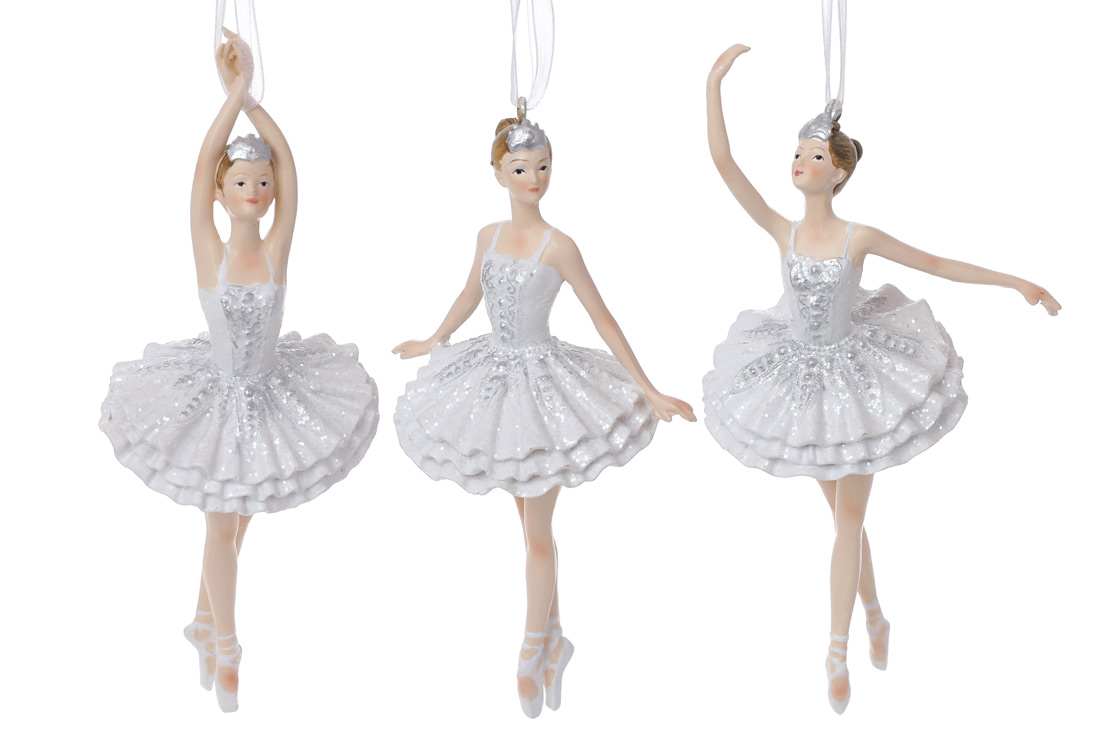 Декоративна фігурка на підвісі Балерина, 13см, колір - білий з гліттером та сріблом, 3 дизайни