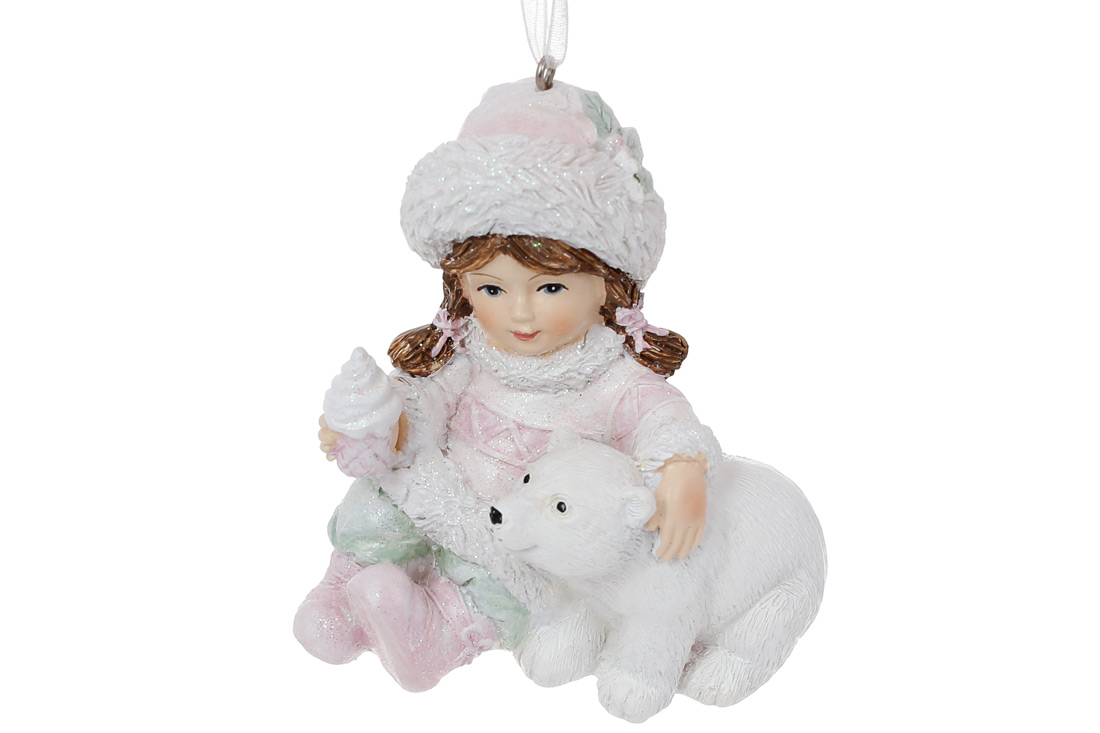 Декоративна фігурка на підвісі Дівчинка з ведмежа, 8см, колір - рожевий з м'ятою та білим