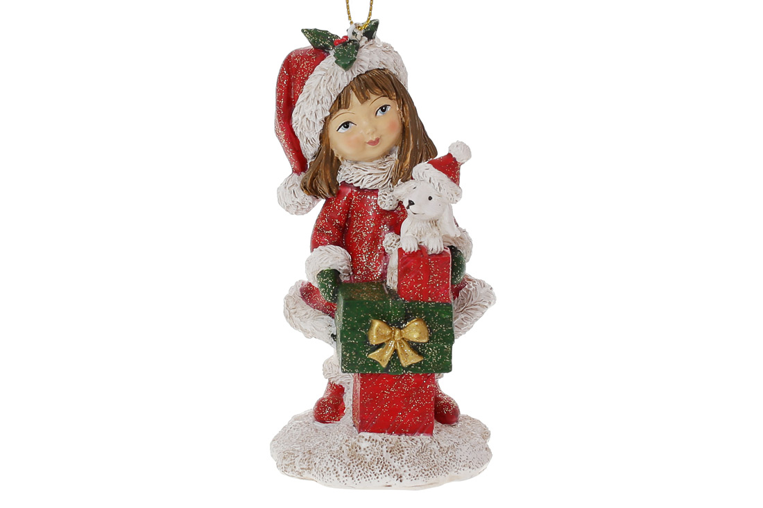 Декоративна фігурка на підвісі Дівчинка з подарунками 12см, колір - червоний, зелений з білим