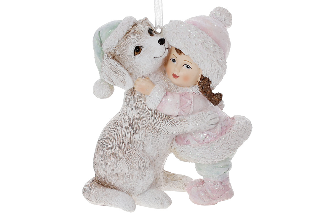 Декоративна фігурка на підвісі Дівчинка з цуценям 10см, колір - рожевий беж