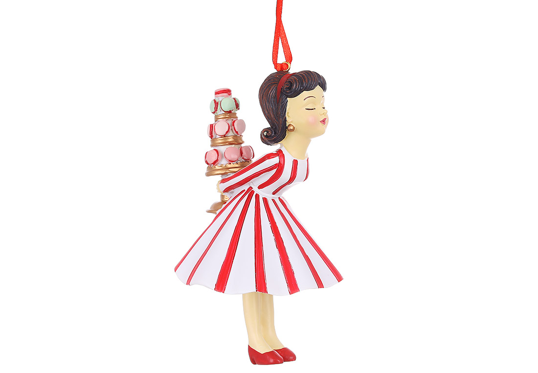 Декоративна фігурка на підвісі Дівчина з макарунсами, 8.5*7.4*13.5см, колір - червоний із білим