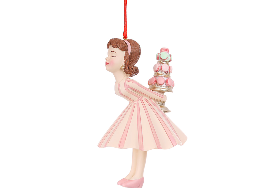 Декоративна фігурка на підвісі Дівчина з макарунсами, 8.5*7.4*13.5см, колір - кремовий із рожевим