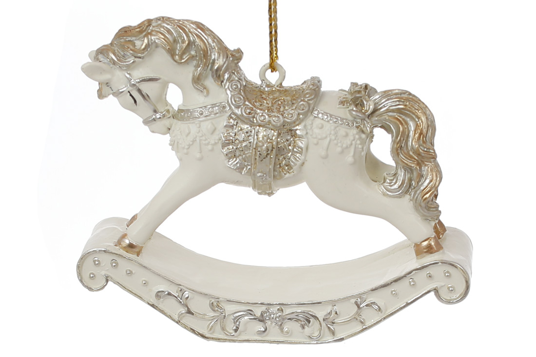 Декоративна фігурка на підвісі Конячка-гойдалка 7.5см, колір - білий з шампанню