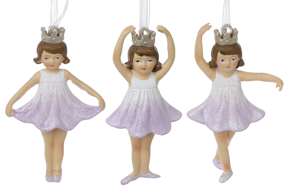 Декоративна фігурка на підвісі Маленька Балерина, 8.5см, колір - білий з фіолетовим, 3 дизайни
