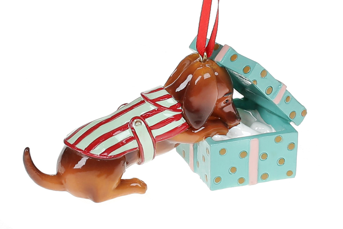 Декоративна фігурка на підвісі Такса з подарунком, 10.3см