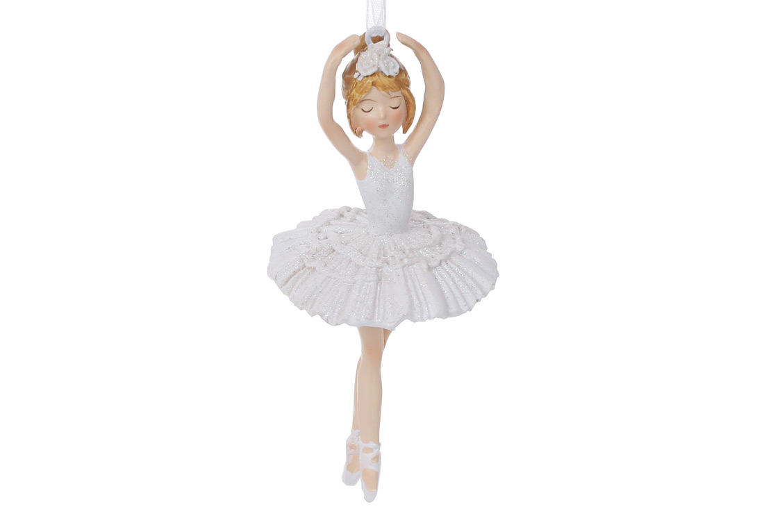 Декоративна фігурка на підвісі Юна Балерина, 10.5см, колір - білий з гліттером