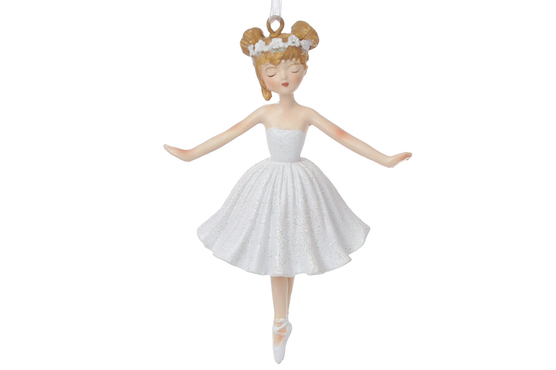 Декоративна фігурка на підвісі Юна Балерина, 10см, колір - білий з гліттером