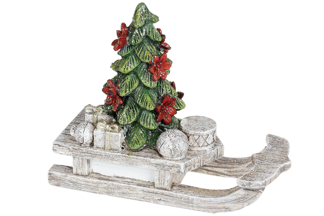 Декоративна фігурка Сани з ялинкою, 12.5см, колір - беж із зеленим та червоним