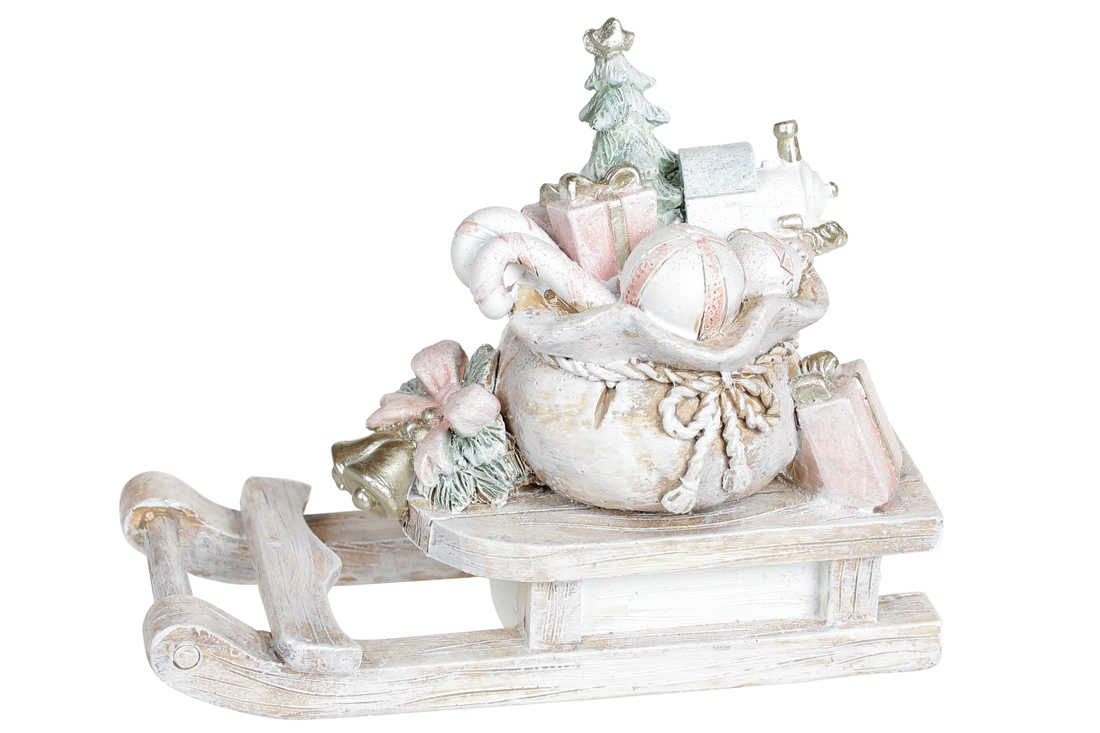 Декоративна фігурка Сани з подарунками, 12.5см, колір - рожево-бежевий