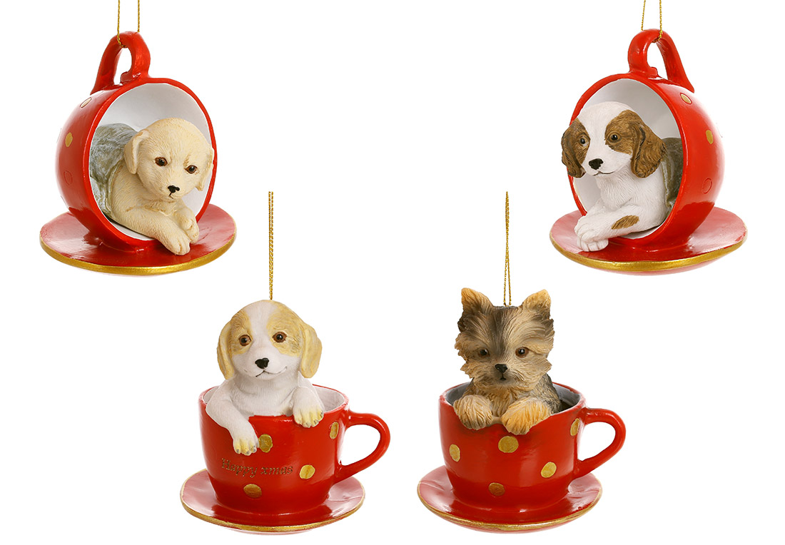 Декоративна фігурка Собачка в чашці з блюдцем 8см і 10см, 4 дизайни
