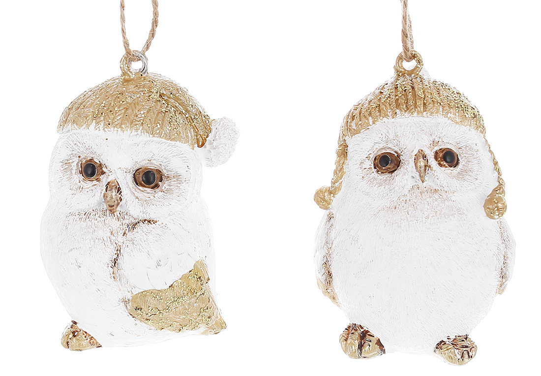 Декоративна фігурка Совушка 7см на підвісі, 2 дизайни, колір - білий із золотом