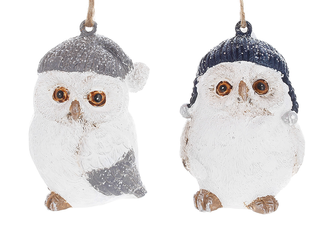 Декоративна фігурка Совушка 7см на підвісі, 2 дизайни, колір - синій та срібло з білим